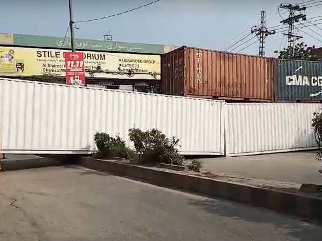 مری روڈ پر داخلے کے تمام راستے بند کر دیے گئے جبکہ مری روڈ پر آنے کے لیے چاہ سلطان روڈ واحد کھلا راستہ ہے۔ بینظیر بھٹو جنرل اسپتال قریب ہونے کے باعث ایک راستہ کھلا چھوڑا گیا۔ مری روڈ میڑو بس اسٹیشن راولپنڈی صدر روڈ سے کنٹینرز لگا کر بند کیا گیا ہے اور مریڑھ چوک پر بھی سڑک کے دونوں اطراف کنٹینرز لگا کر بند کر دیے گئے۔پشاور روڈ بھی ایم ایچ چوک اور چیرنگ کراس سمیت قاسم مارکیٹ بھی کنٹینرز سے بند کی گئی ہے۔ لیاقت باغ چوک سے قبل موتی محل کے قریب بھی مری روڈ کنٹینرز لگا کر بند کر دیے جبکہ لیاقت باغ چوک، کمیٹی چوک سمیت فیض آباد تک کنٹینرز کھڑے کرکے شاہراہ کو بند رکھا گیا ہے۔