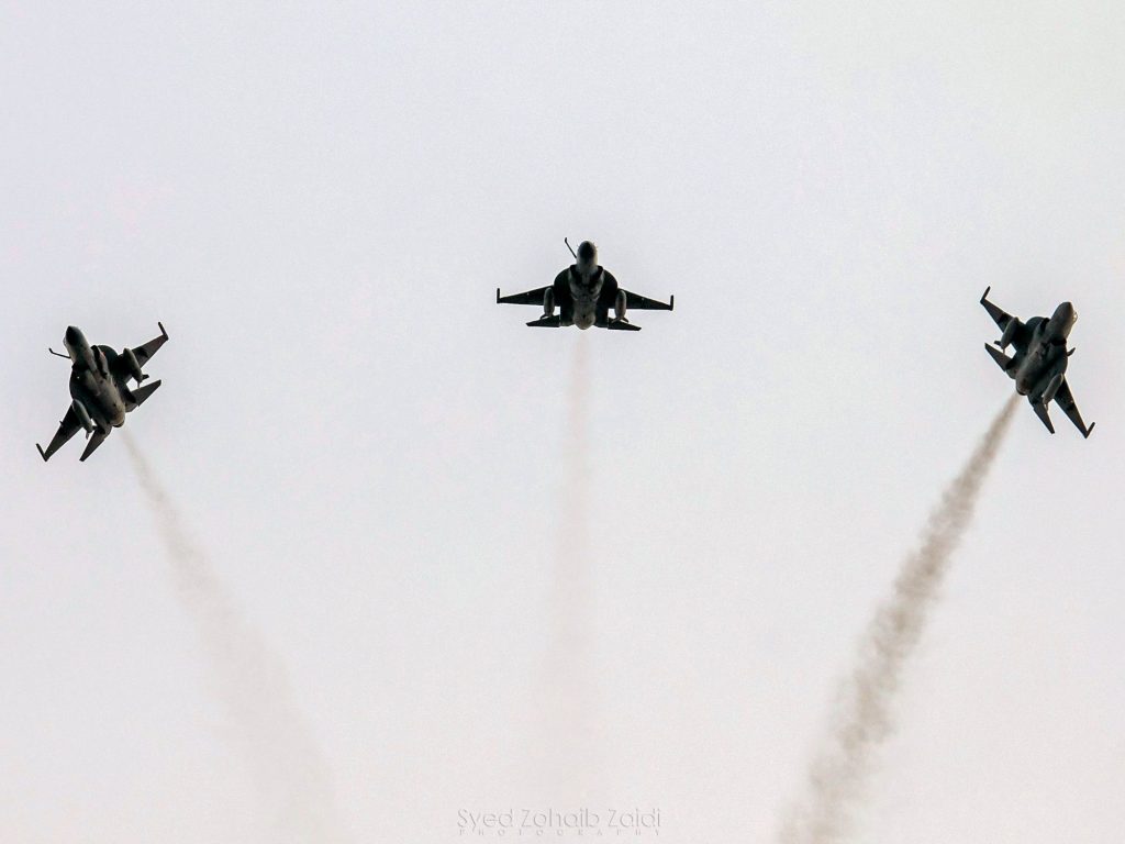 پاک فضائیہ کے بہادر پائلٹس نے آسمان کو سبز ہلالی پرچم کے رنگوں سے رنگتے ہوئے قوم کو دلکش انداز میں سلامی پیش کی۔ شیردلز کی ٹیم نے اسپرٹ پاس اور شاہین بریک مینیوور کے ذریعے اپنی غیر معمولی پیشہ ورانہ صلاحیتوں کا ثبوت دیا۔ مزید براں جے ایف-17 تھنڈر بلاک تھری اور ایف-16 فائٹنگ فالکنز نے اپنے فضائی مظاہرے سے تماشائیوں کے دل موہ لیئے۔ جے ایف-17 تھنڈر طیاروں، جو پاکستانی مہارت کی علامت ہیں اور مختلف بین الاقوامی مشقوں میں اپنی جنگی صلاحیتوں کا لوہا منوا چکے ہیں، کی اس فضائی مظاہرے میں شمولیت خصوصی اہمیت کی حامل ہے۔ فخر پاکستان جے ایف-17 تھنڈر طیاروں کی متعدد دوست ممالک کی فضائی افواج میں شمولیت اسکی حربی صلاحیتوں کے اعتراف کا منہ بولتا ثبوت ہے۔ آئی سی سی چیمپیئنز ٹرافی کے افتتاحی میچ کے موقع پر پاک فضائیہ کا یہ فضائی مظاہرہ اس امر کا غماز ہے کہ پاک فضائیہ ہر محاز پر قوم کے شانہ بشانہ کھڑی ہے۔