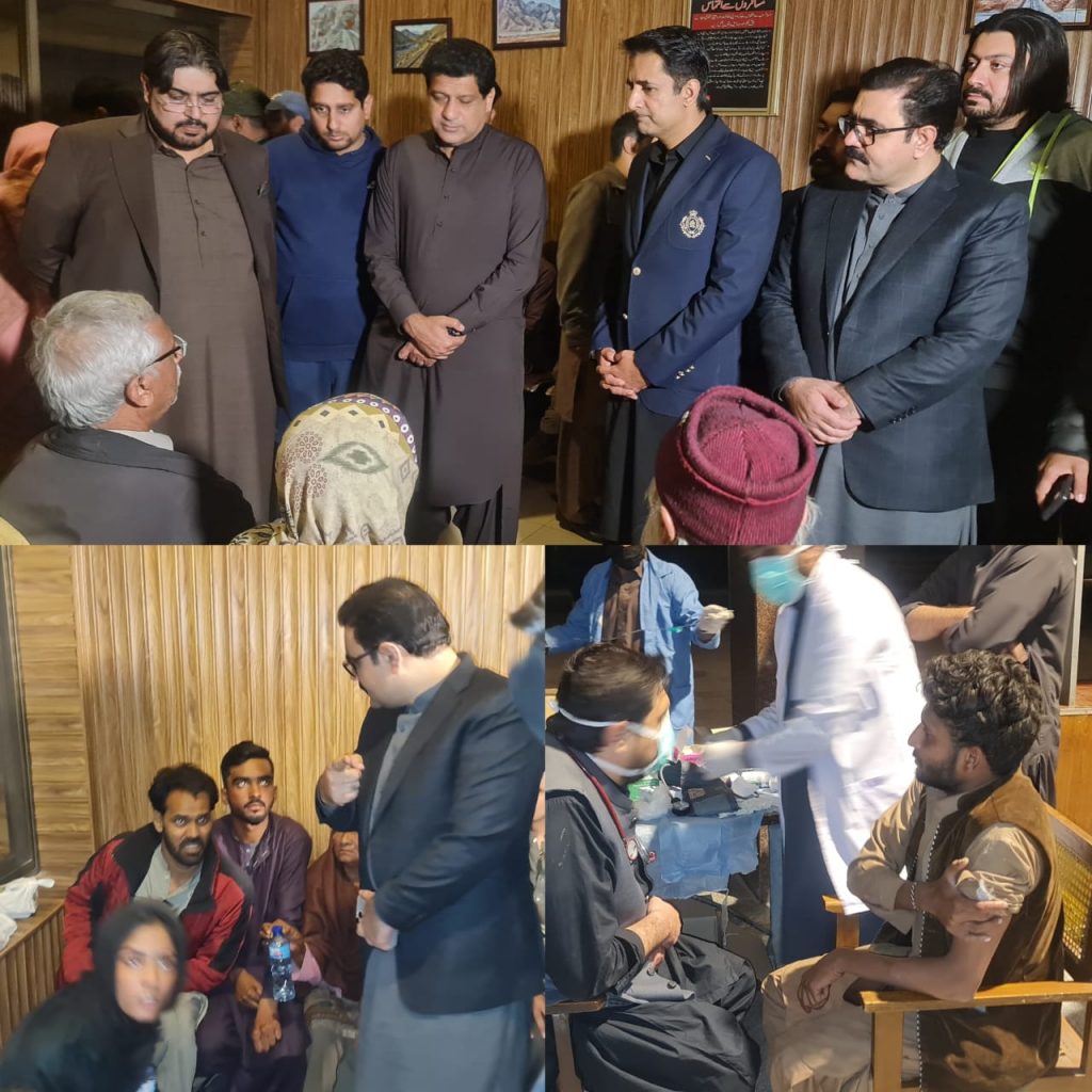 جعفر ایکسپریس سانحے کے مسافروں سے وزیر صحت بخت محمد کاکڑ منسٹر پی اینڈ ڈی ظہور بلیدی ، کمشنر کوٸٹہ حمزہ شفقات ، ڈپٹی کمشنر کوٸٹہ اسعد بن اسد کی ملاقات