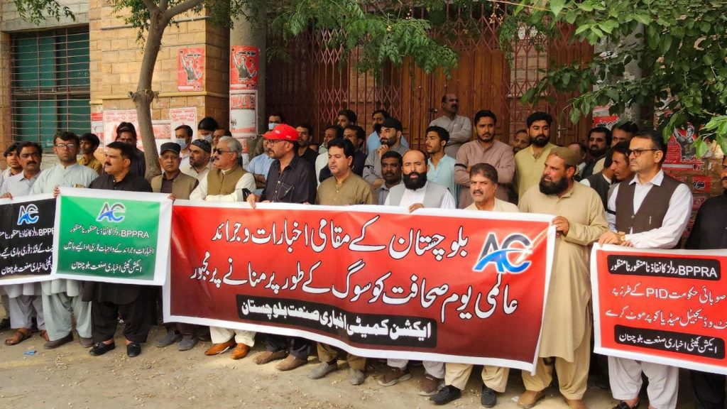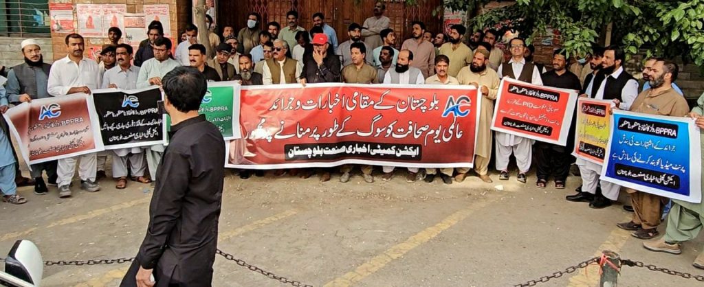 کوئٹہ(پ ر ) ایکشن کمیٹی اخباری صنعت بلوچستان کے زیراہتمام آزادی صحافت کے عالمی دن کے موقع پر احتجاجی مظاہرہ کیا گیا۔احتجاجی مظاہرے میں بلوچستان کے پرنٹ میڈیا کے ہر شعبہ سے تعلق رکھنے والے افراد کی بڑی تعداد میں نمائندگی موجود تھی ۔